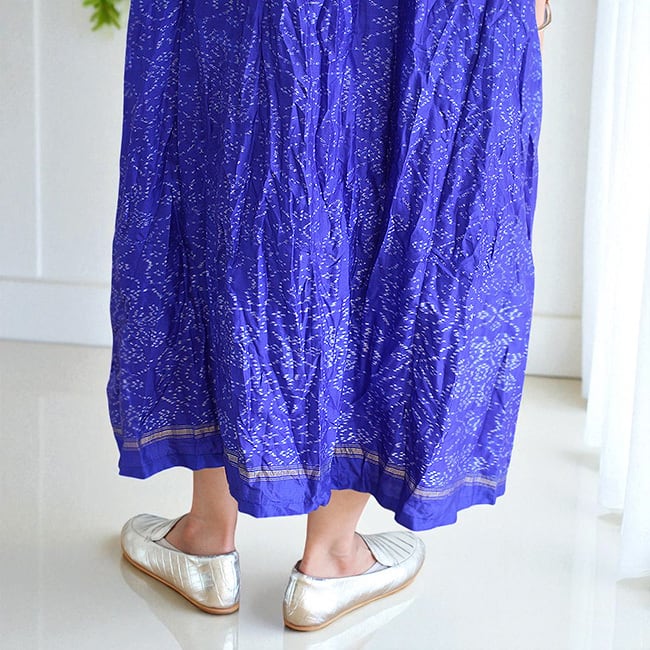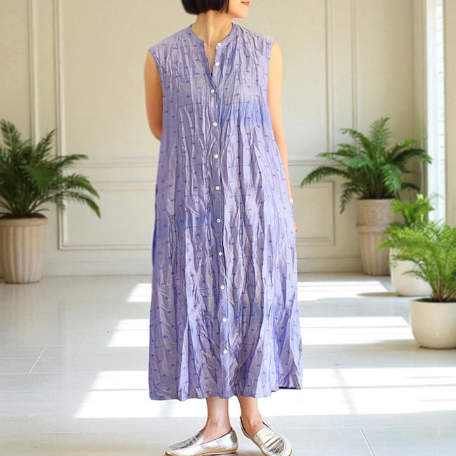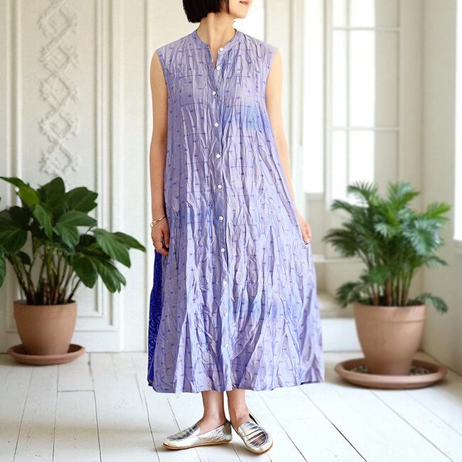パトラ織りシルクサリークリンクルワンピース【ブルー】