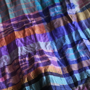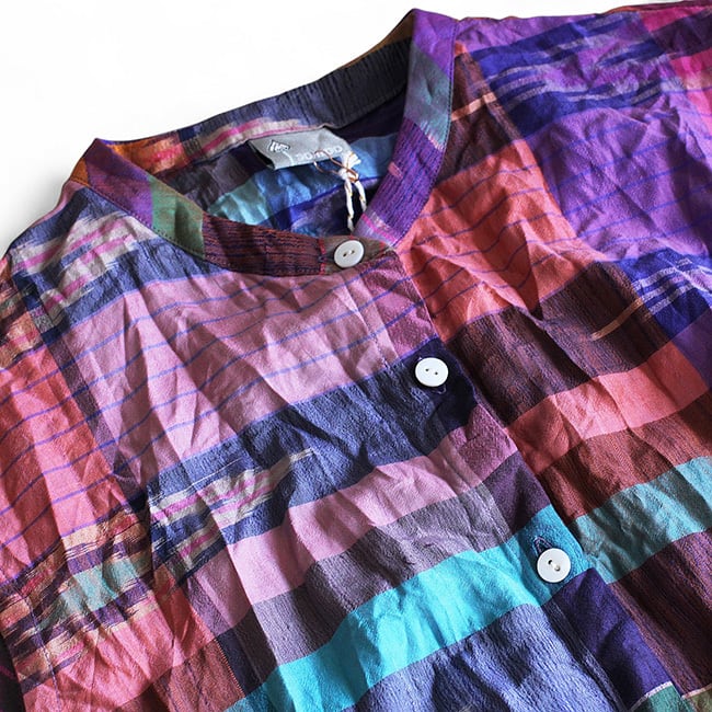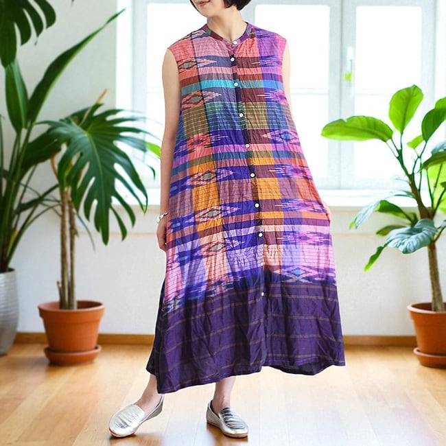 幾重にも重なるカラフルな色と格子模様が織りなす、まるで絵画のような一着