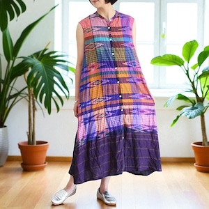 パトラ織りシルクサリークリンクルワンピース【マルチカラー】