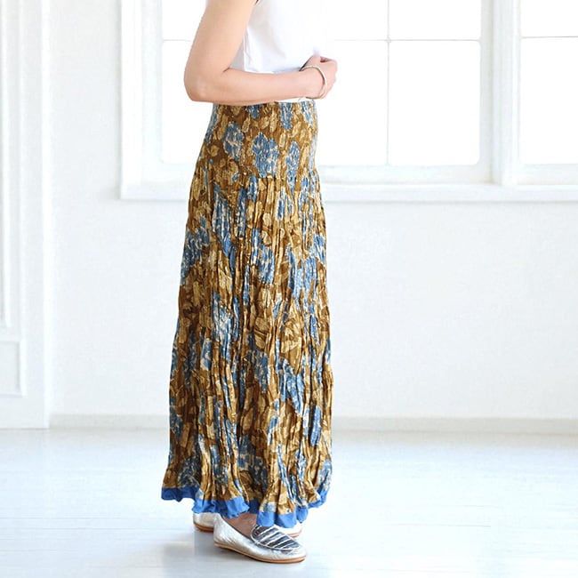 ★インドのブロックプリント生地をたっぷり使ったクリンクルコットンロングスカート。