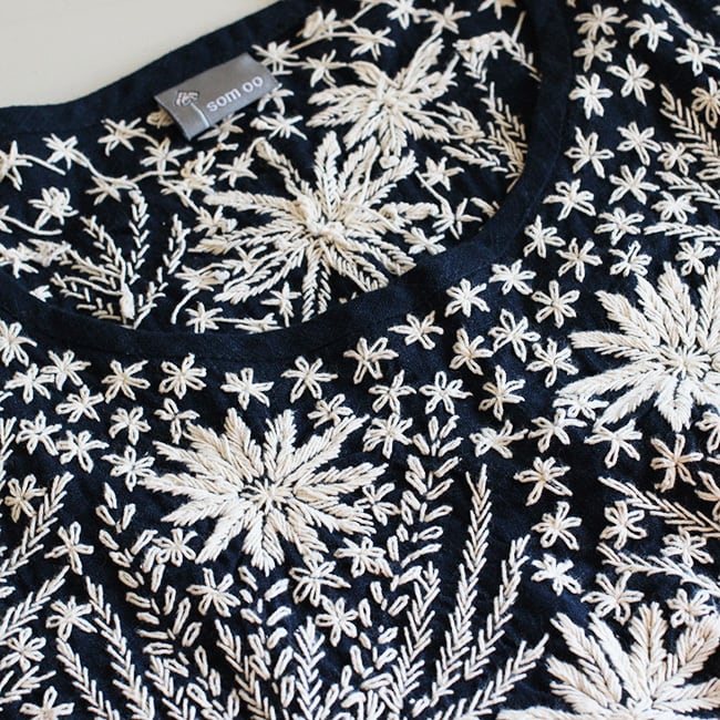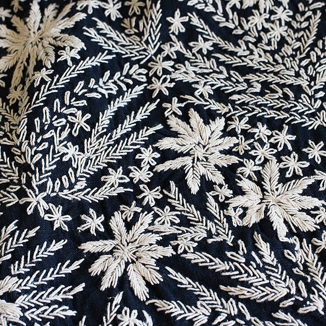 そこにコットン糸でびっしりと刺繍が重ねられているため、ふんわり軽やかというより