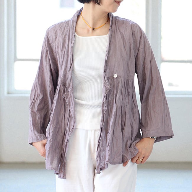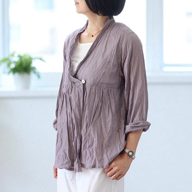 クリンクルコットンギャザーブラウスカーディガン【モーヴ】