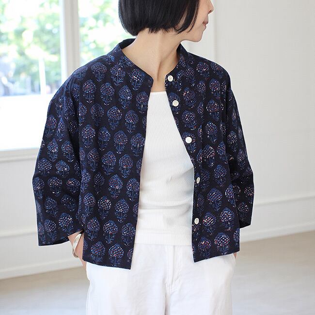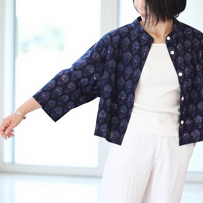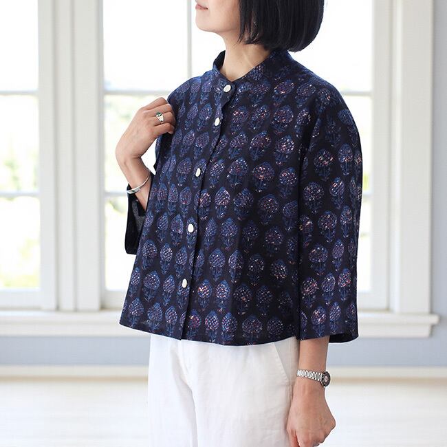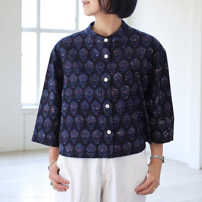 ★インドのハンドブロックプリントコットンで仕立てたシャツ。