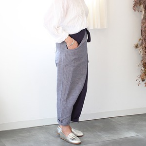 ヘンプコットンとストライプリネンのバイカラーラップパンツ【ネイビー✖️ネイビー】