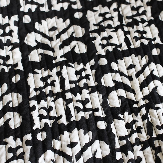 着こなしやすいモノトーンの花柄ブロックプリント。