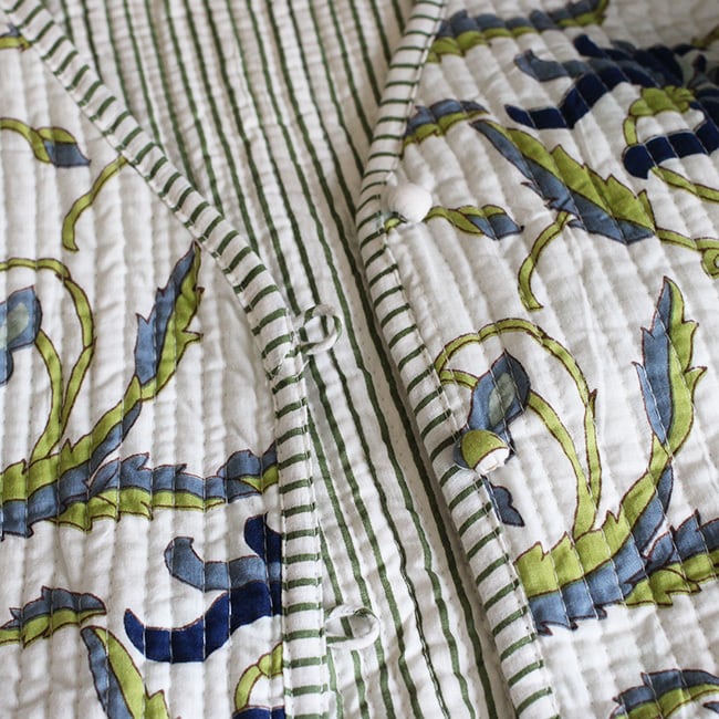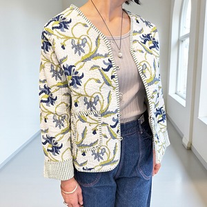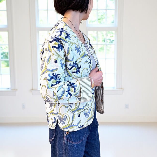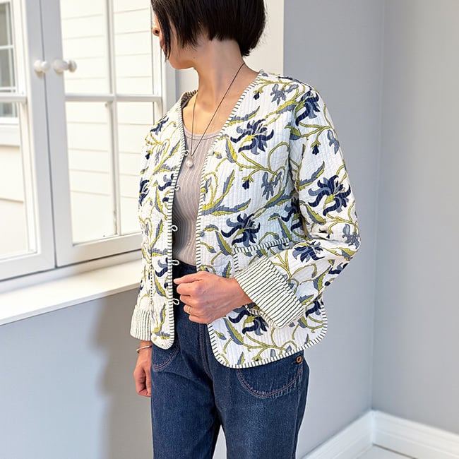 ★温かみのある ハンドブロックプリント生地を使用したキルティングジャケット。