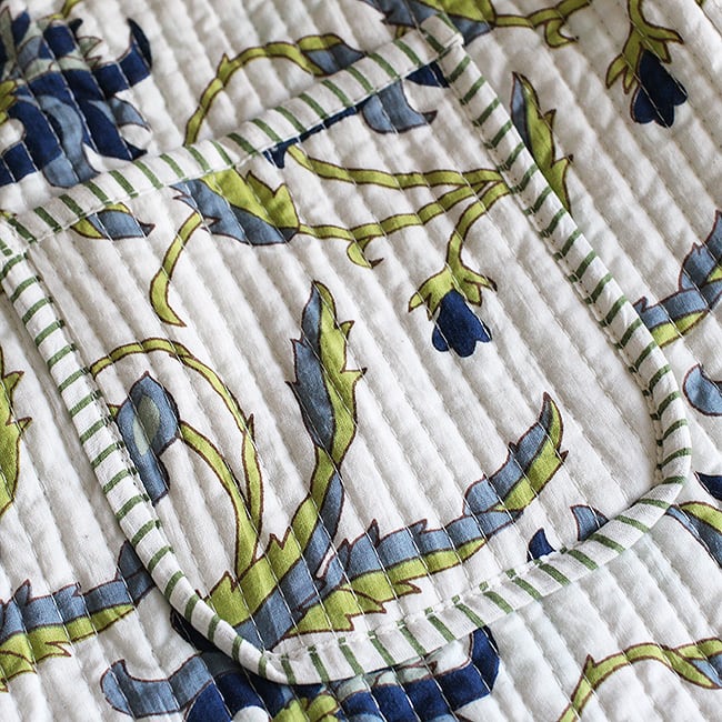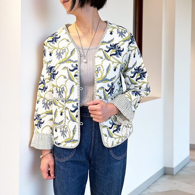 ブロックプリントのキルティングジャケット【ホワイト】