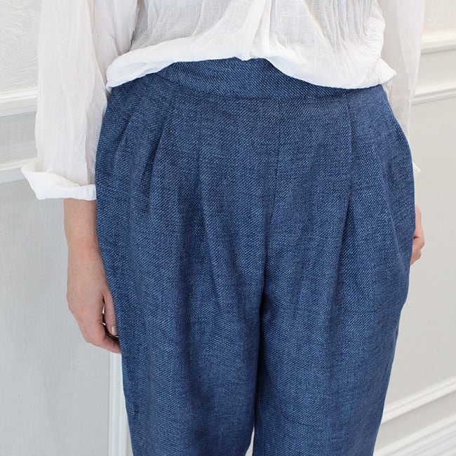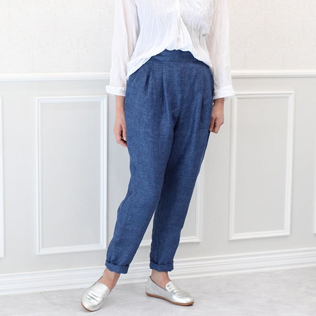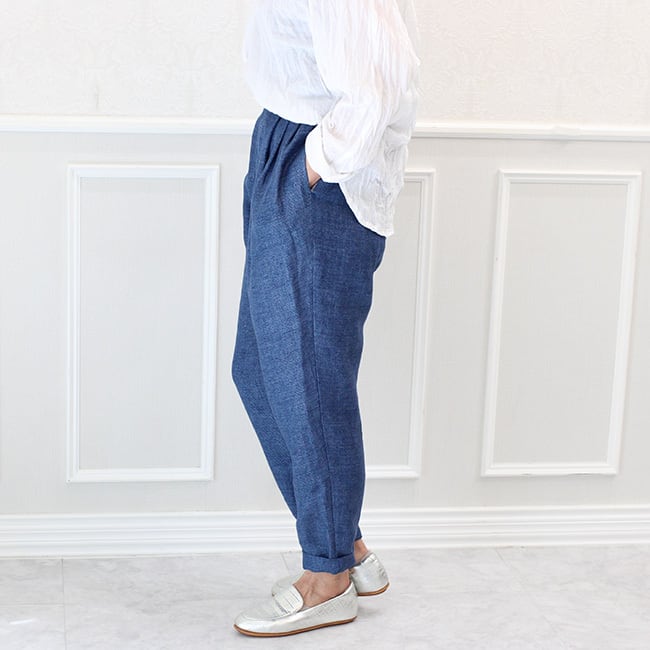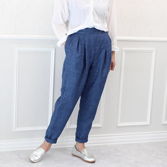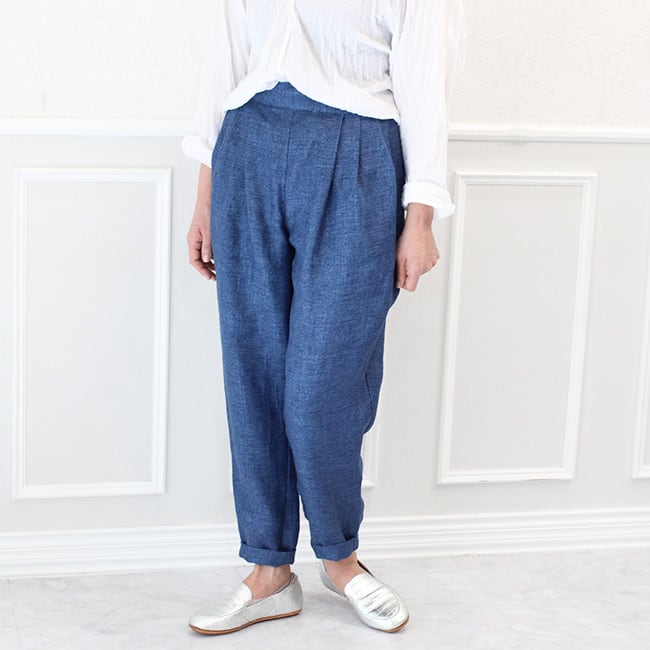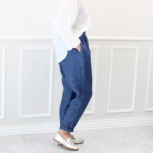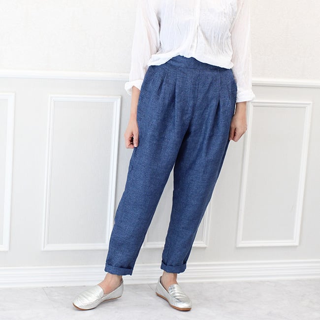 イタリア製リネンのタックテーパードパンツ