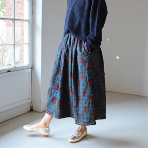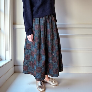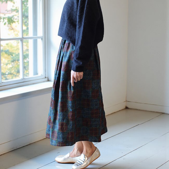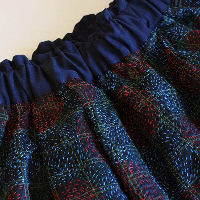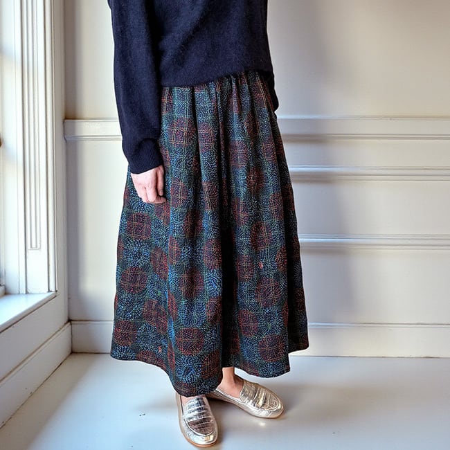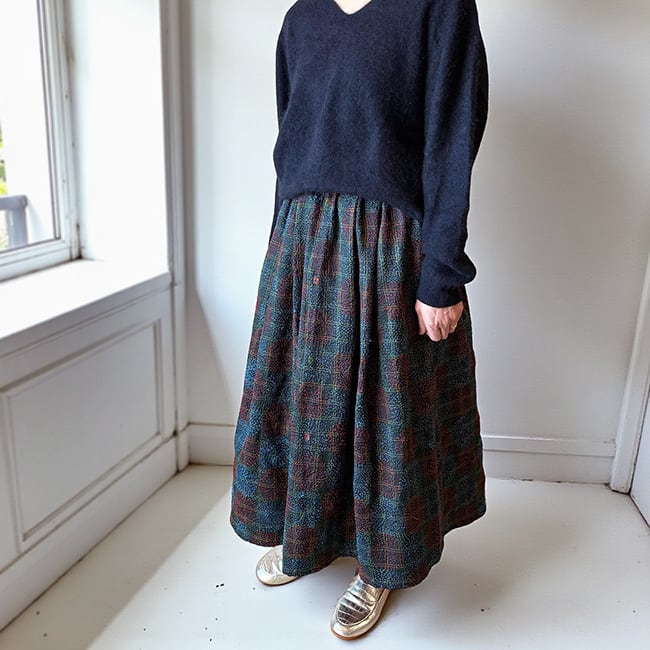 ★インドの刺し子、シルクカンタで仕立てたギャザースカート。