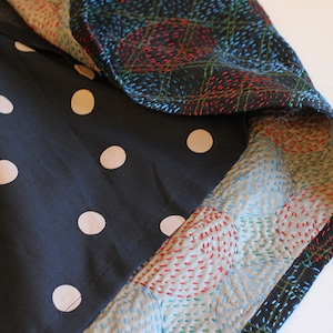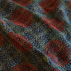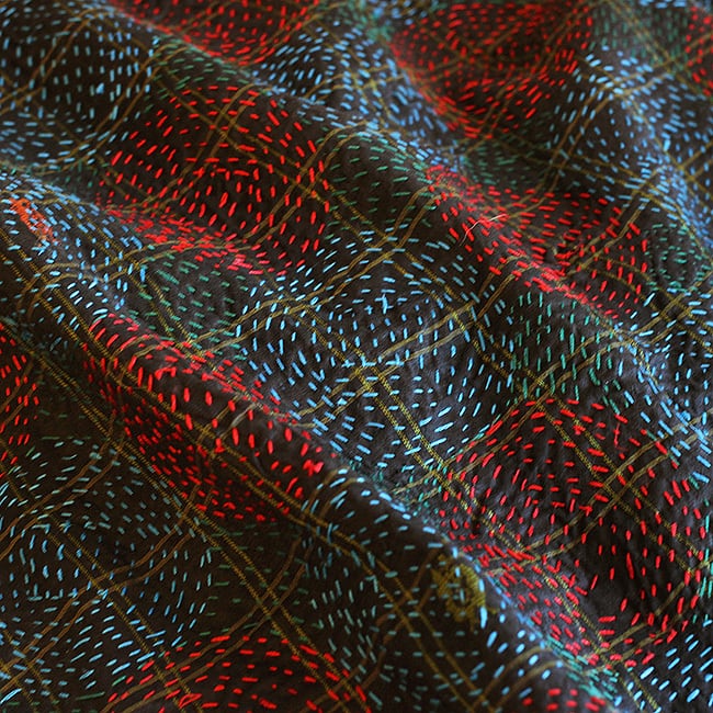 使い込んだシルクのサリーを重ね合わせて、チクチクと一針ずつ施した刺し子。