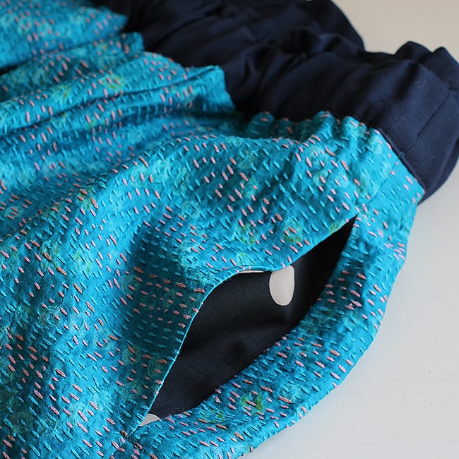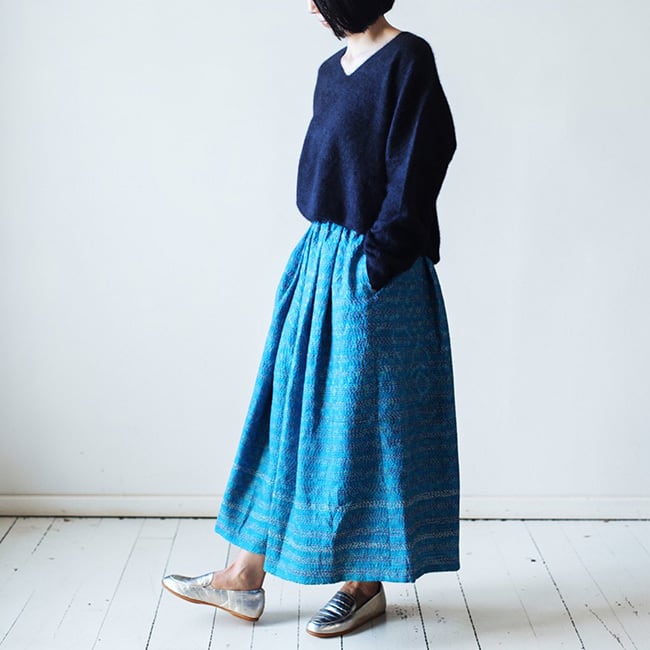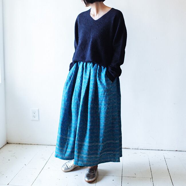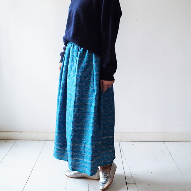 ★インドの刺し子、シルクカンタで仕立てたギャザースカート。