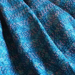 使い込んだシルクのサリーを重ね合わせて、チクチクと一針ずつ施した刺し子。