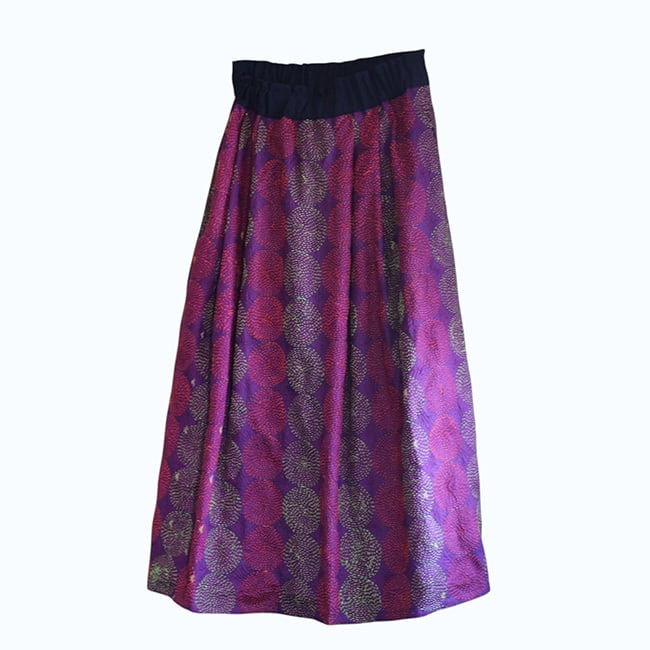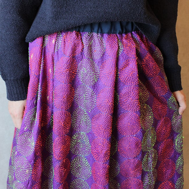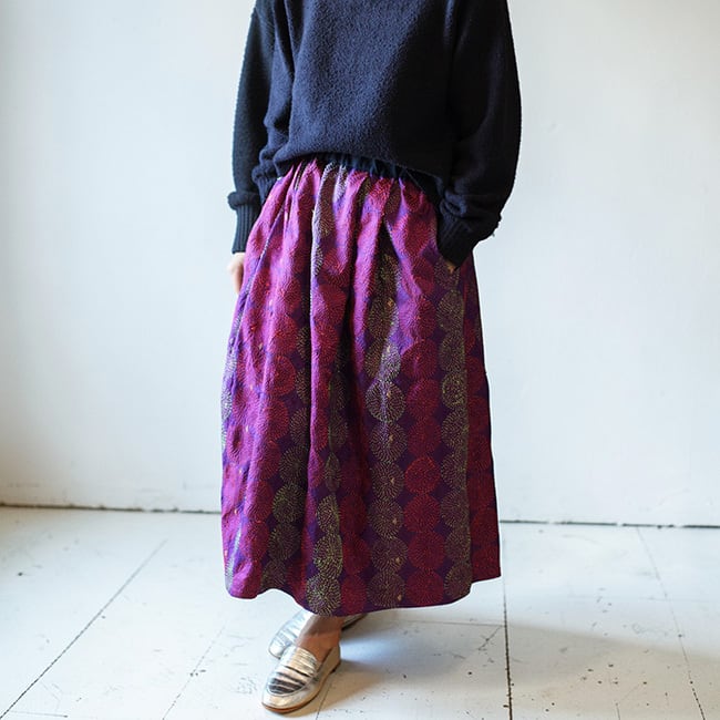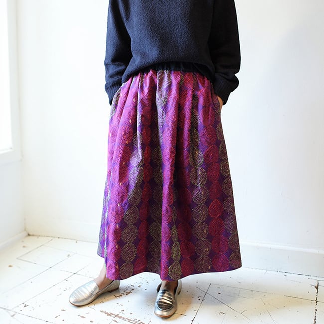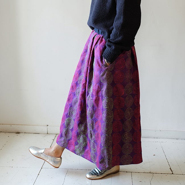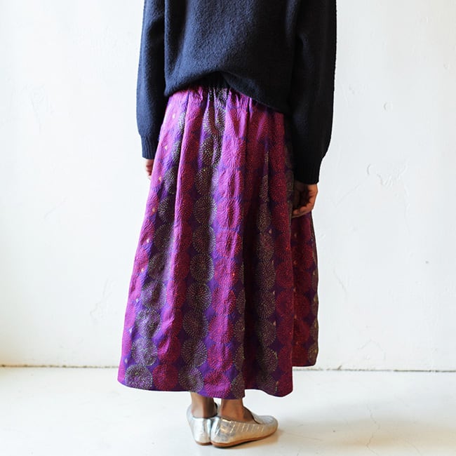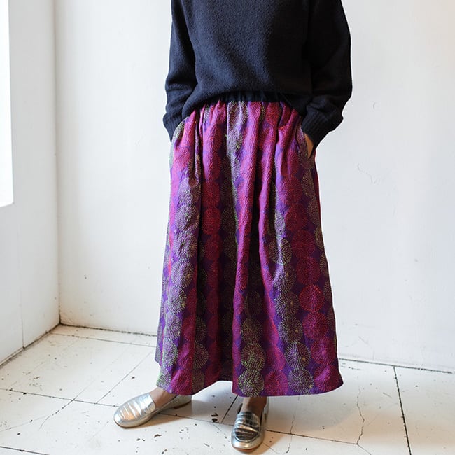 刺し子シルクカンタギャザースカート【パープルB】