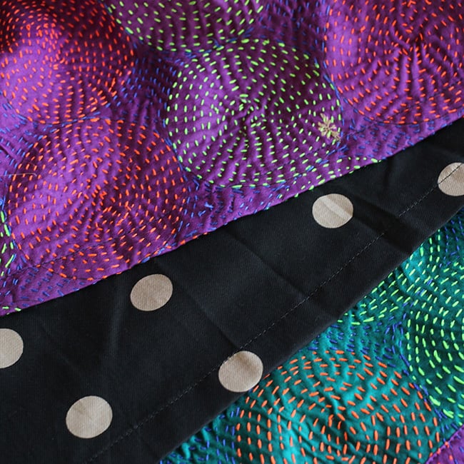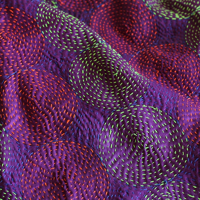 使い込んだシルクのサリーを重ね合わせて、チクチクと一針ずつ施した刺し子。
