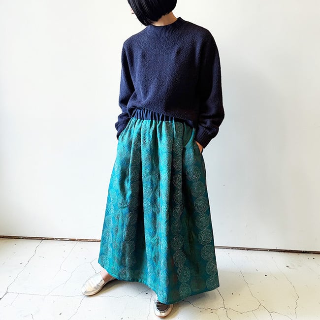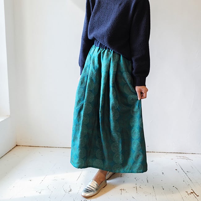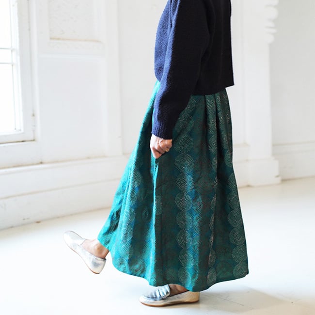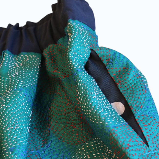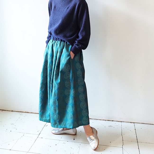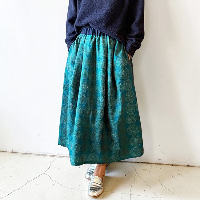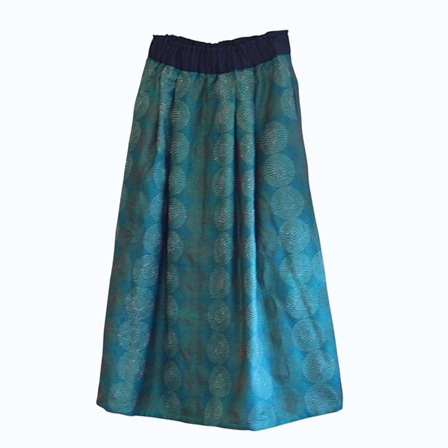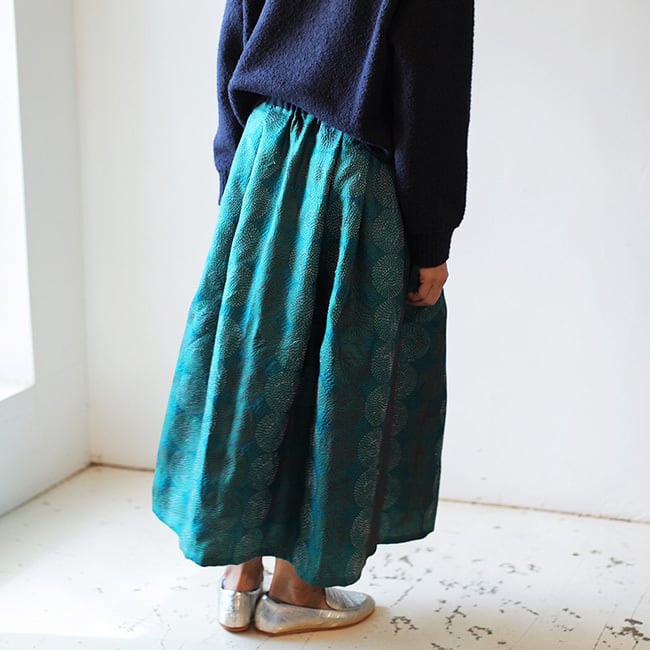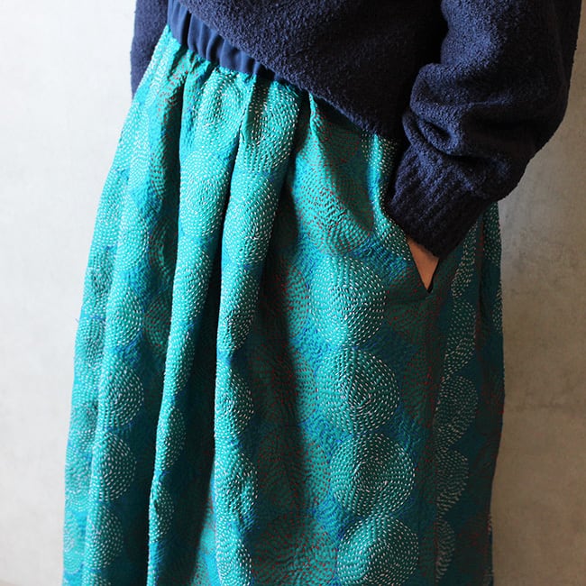 ★インドの刺し子、シルクカンタで仕立てたギャザースカート。