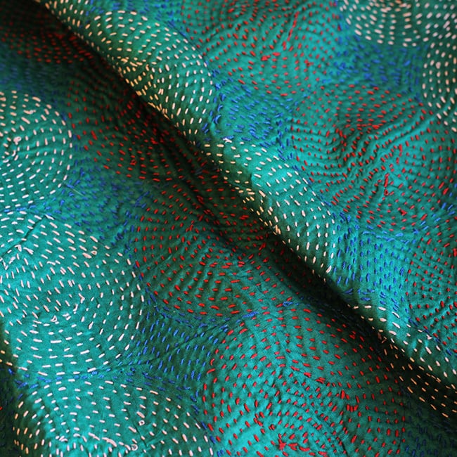 使い込んだシルクのサリーを重ね合わせて、チクチクと一針ずつ施した刺し子。