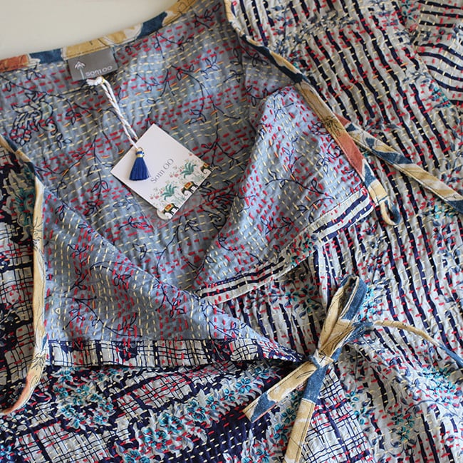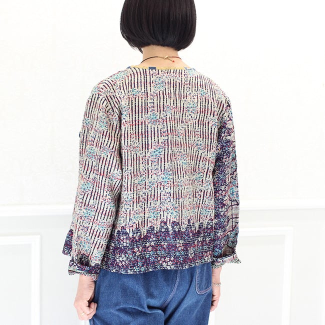 インドの手仕事がたっぷりと詰まった個性的なカンタで存在感のある華やかなブラウスが完成しました。