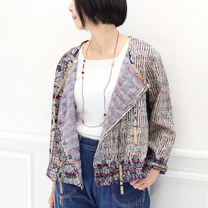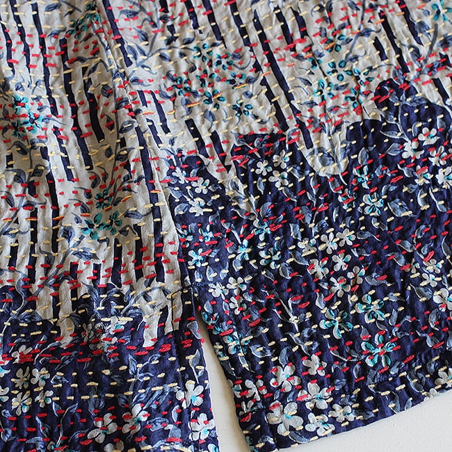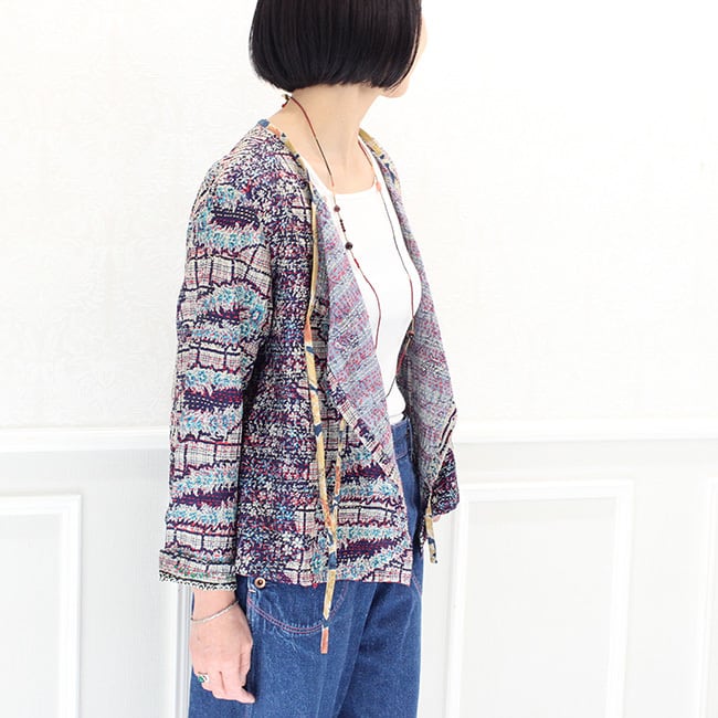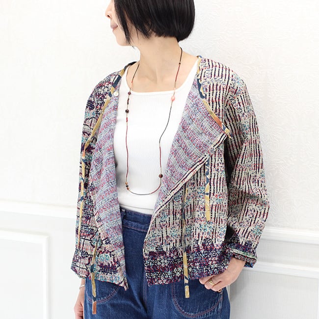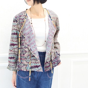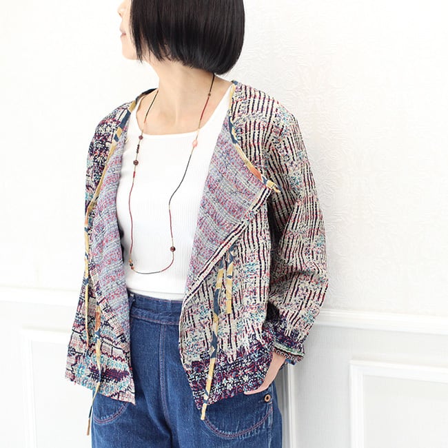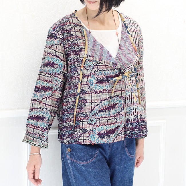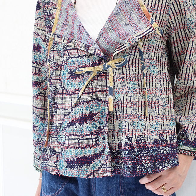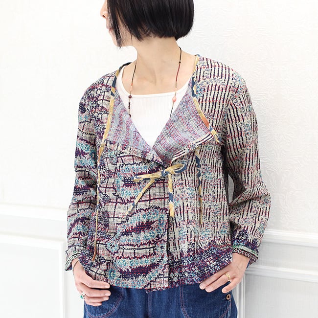 ★インドのカンタ刺繍(刺し子)シルクで仕立てたブラウスジャケット。