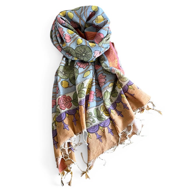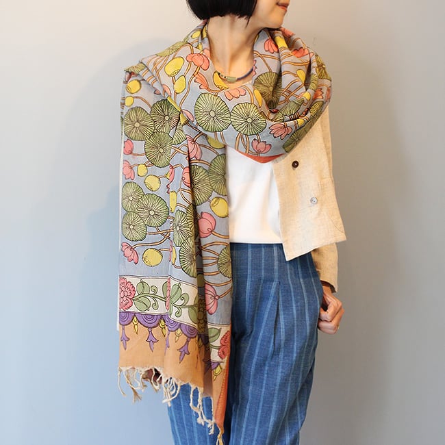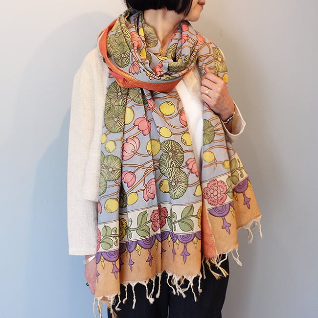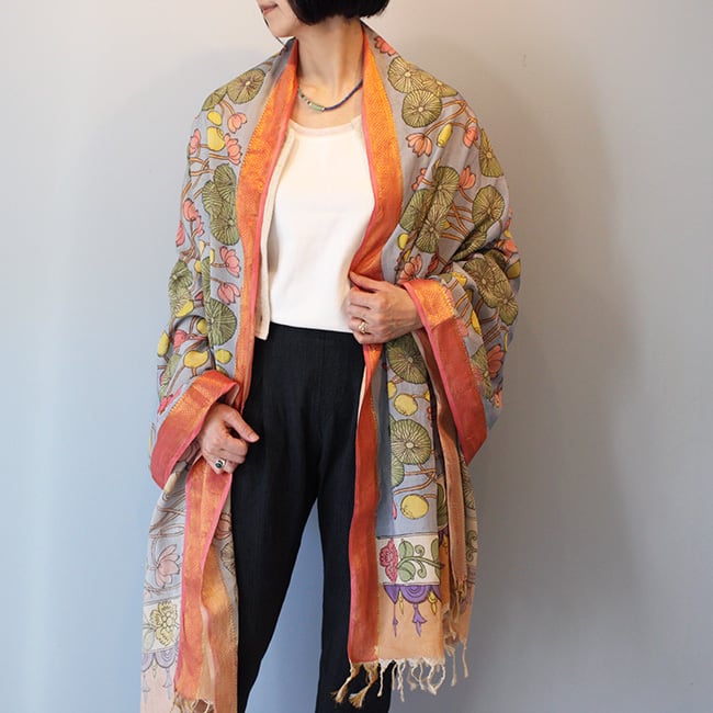 インド手描きカラムカリシルクコットンストール【C】