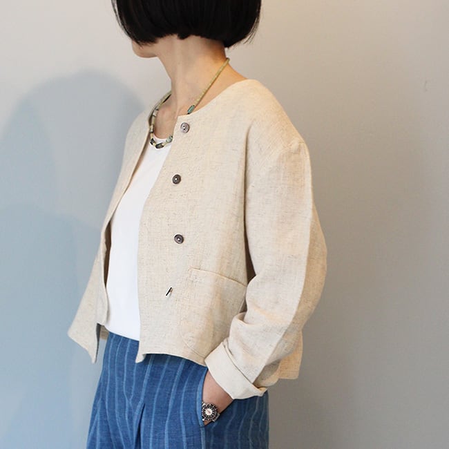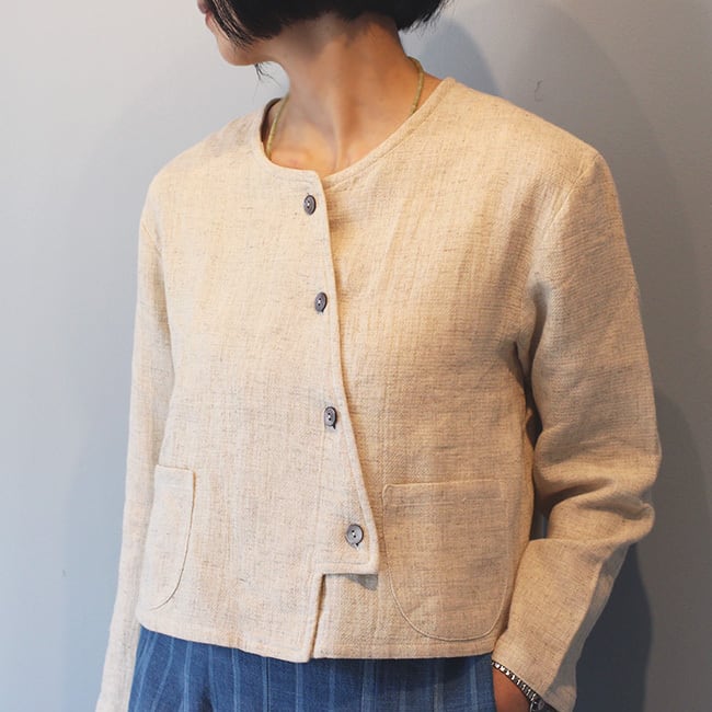★タイのヘンプコットンダブルレイヤー生地で仕立てた、軽やかなショートジャケット。