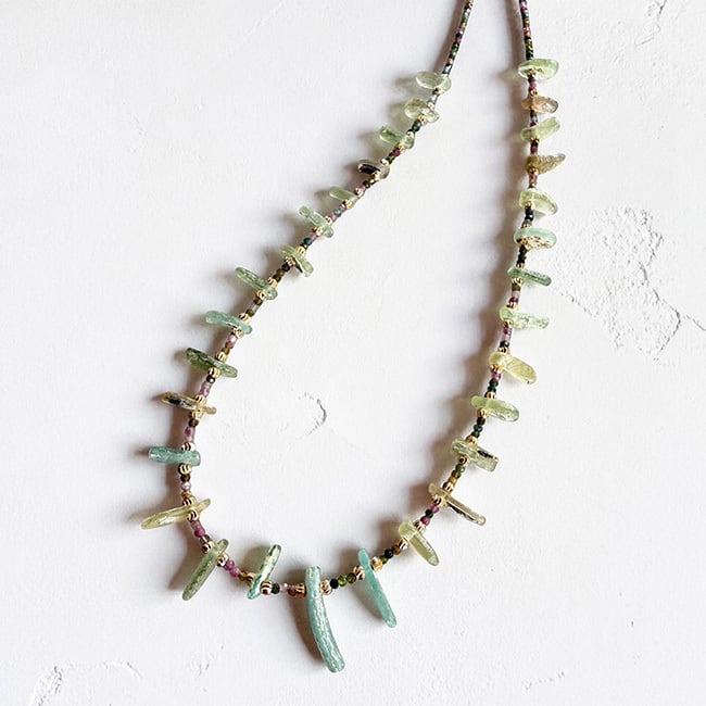 ★アフガニスタンで出土した古代ガラス、ローマングラスを使用した存在感たっぷりのネックレス。