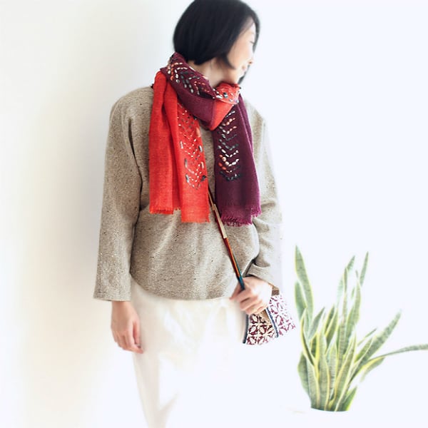 SALE★ツートーンウール極太手刺繍ショール