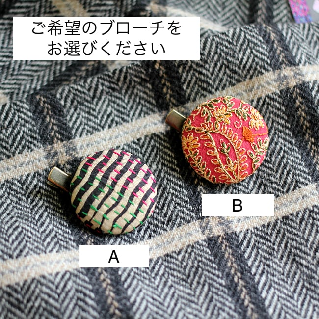 *刺繍ブローチの柄の出方は生地の裁断部分により多少の違いがございます。