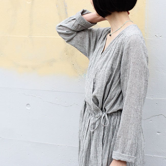 リネンコットンクリンクルカシュクールワンピース【ストライプ】
